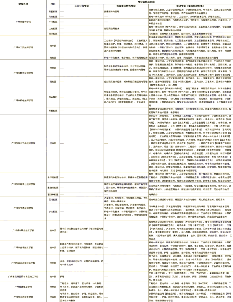 1、技校三二分段专业及省级重点特色专业在第一批次招生,普通专业在第四批次招生。