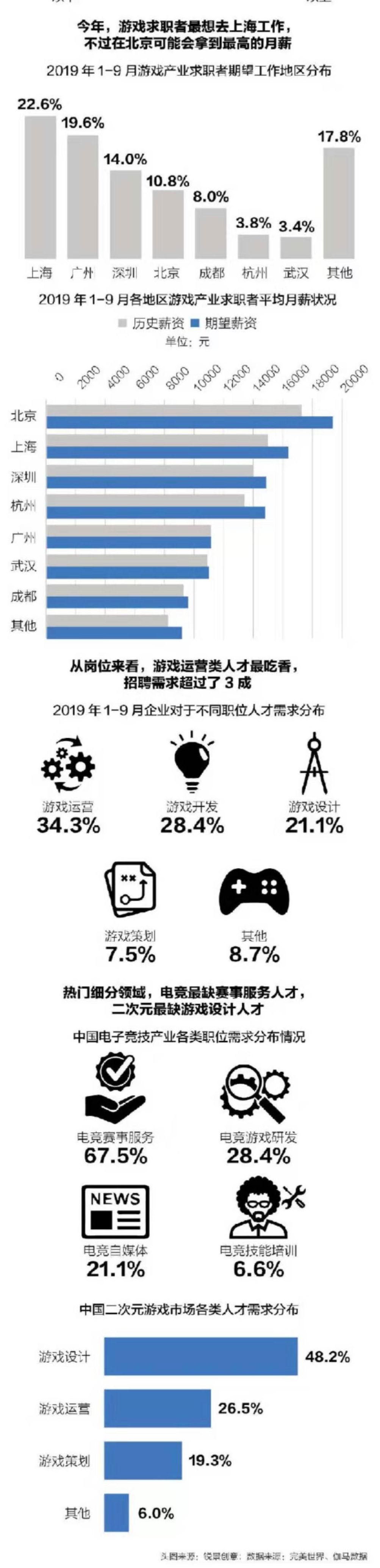 其实,这些都是想象中的电竞专业。电竞专业不止打比赛,他们更多从事电竞赛事的策划组织运营管理等工作。据专业数据公司显示2019年游戏人才缺口如下图: